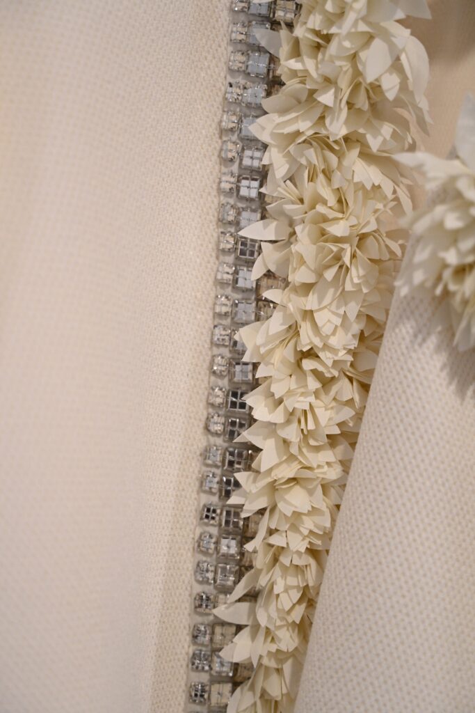 La robe de mariée, entre ses mains, devient l’un des vêtements les plus complexes et les plus chargés de sens qui soient. Elle y concentre l’intime, le symbolique, la mémoire familiale et l’espérance. La Couture, sous ses doigts, est un rite de passage qui permet l’élévation de la femme.